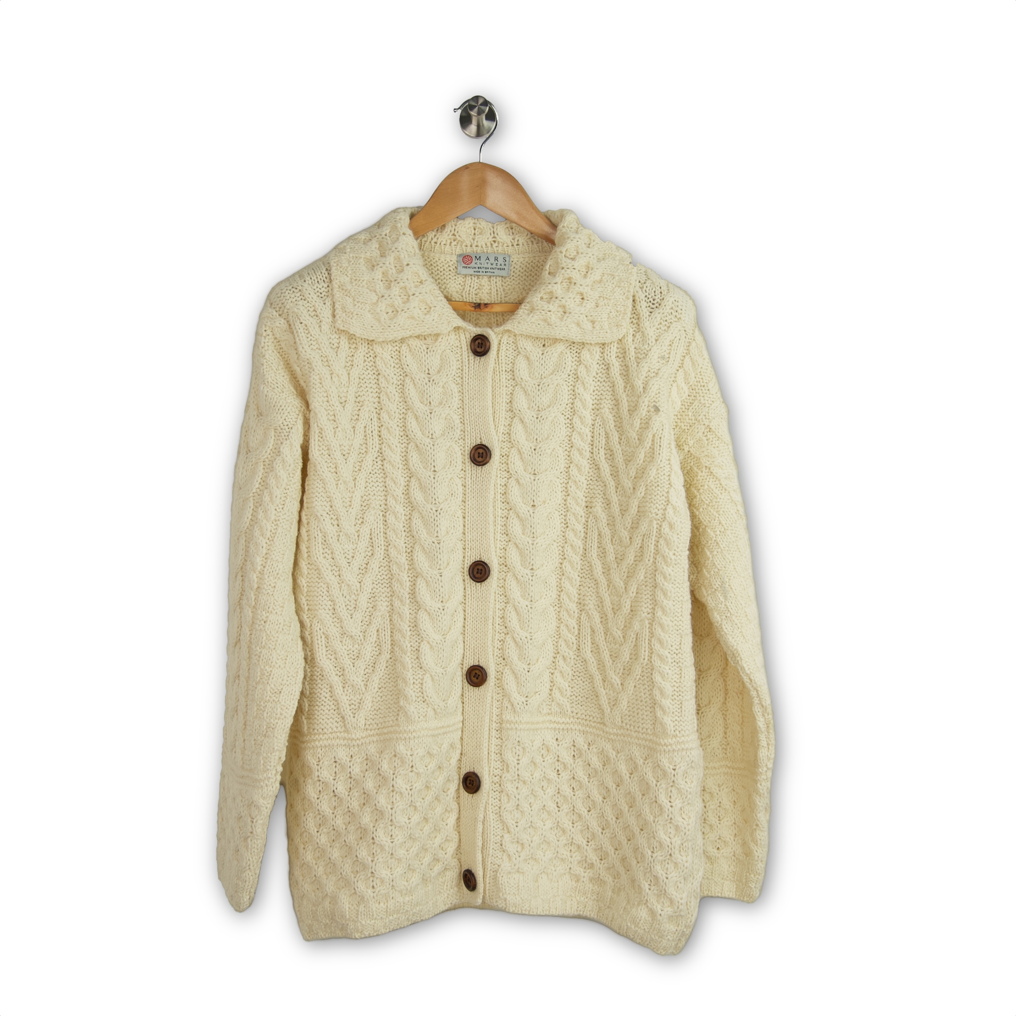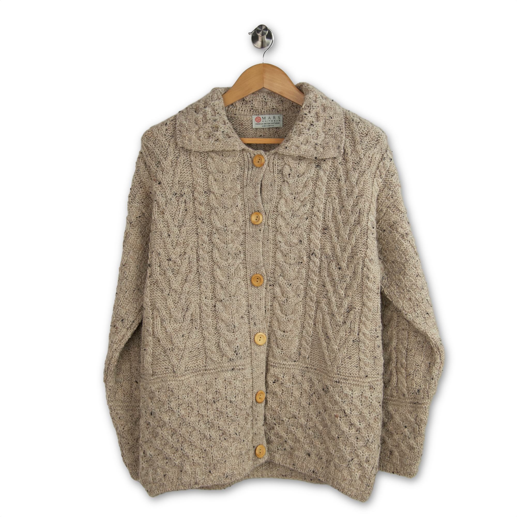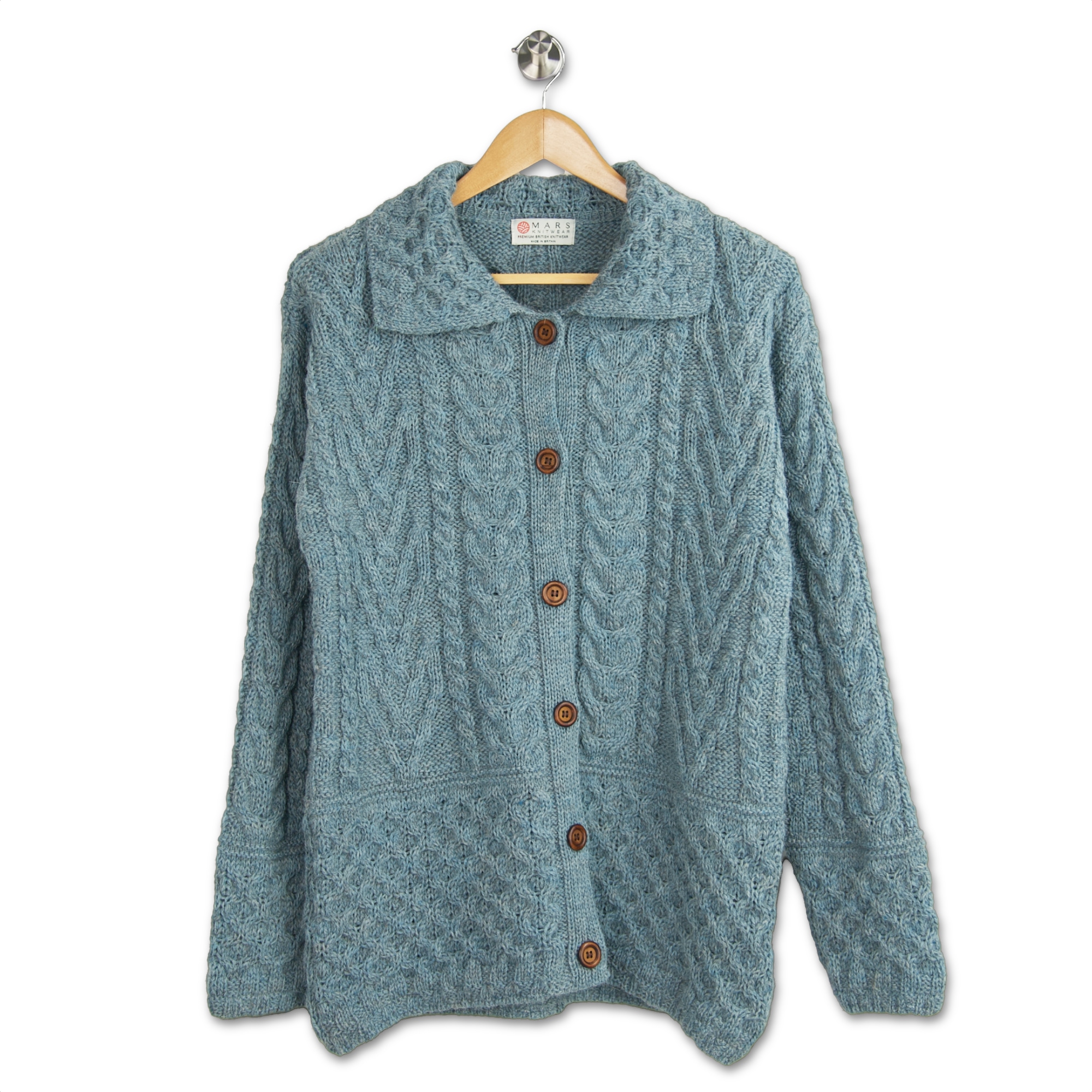 The collar has been completely redesigned with our signature honeycomb pattern as well as increasing the size to sit better on your shoulders. Apart from some minor cable tweaks we’ve added contrasting buttons to celebrate your exquisite cardigan.